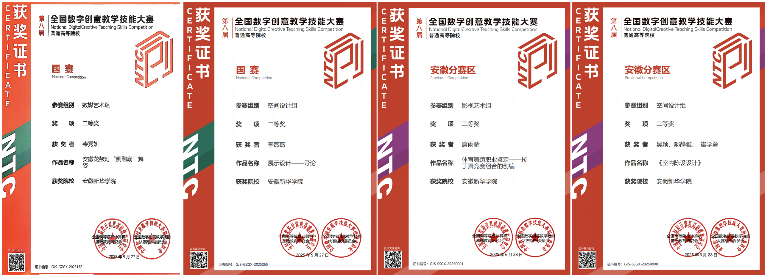 在第八届全国数字创意教学技能大赛中,我院教师斩获国赛二等奖2项、省赛二等奖2项。该大赛是我国数字创意与数字艺术教育领域的高水平权威赛事,重点关注教师如何将最新的数字技术融入课堂教学,有效提升学生的创意实践能力。我院教师的获奖,正是其在教学内容、方法、手段上紧跟数字时代步伐,将抽象理论转化为生动教学实践的生动证明。