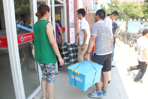 见到刘振宇和付新建的时候,他们正在帮着同是新生的艺术设计专业的江志远和他的父母搬行李,领着他去新生宿舍。新生大多住在六楼,而他们这样来回已经有十几趟了,但仍然干劲十足。江爸爸说:“他们也是新生就这么勤快,帮助其他的学生,很不容易啊!”
