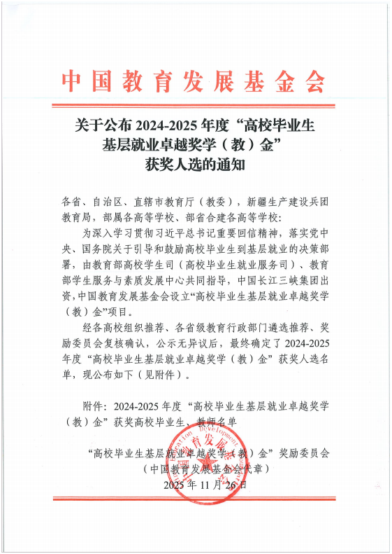 本网讯(通讯员:刘晓蓉)近日,教育部、中国教育发展基金会公布2024-2025年度“高校毕业生基层就业卓越奖学(教)金”获奖名单,bat3652018届建筑学专业毕业生徐旭东获此殊荣。