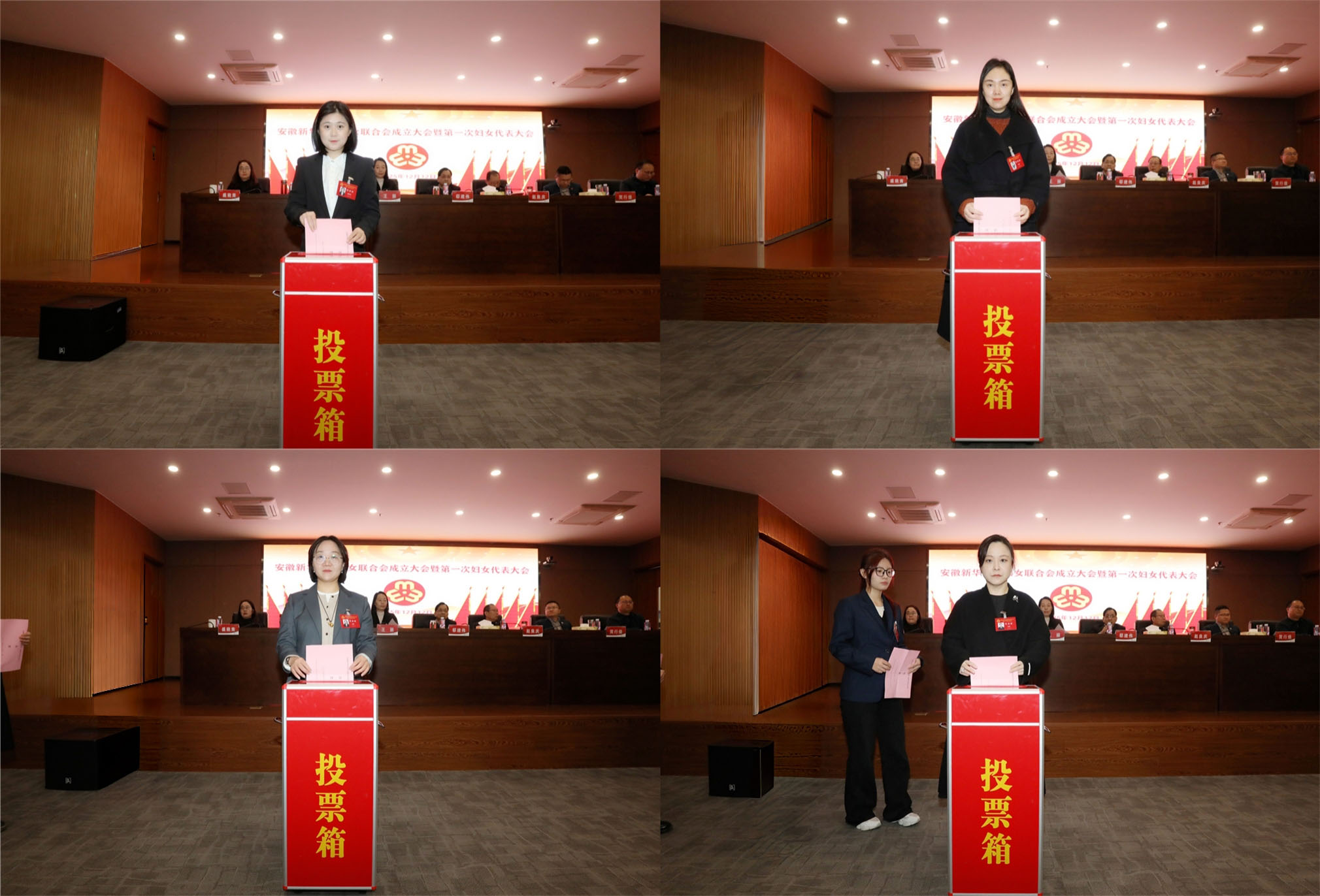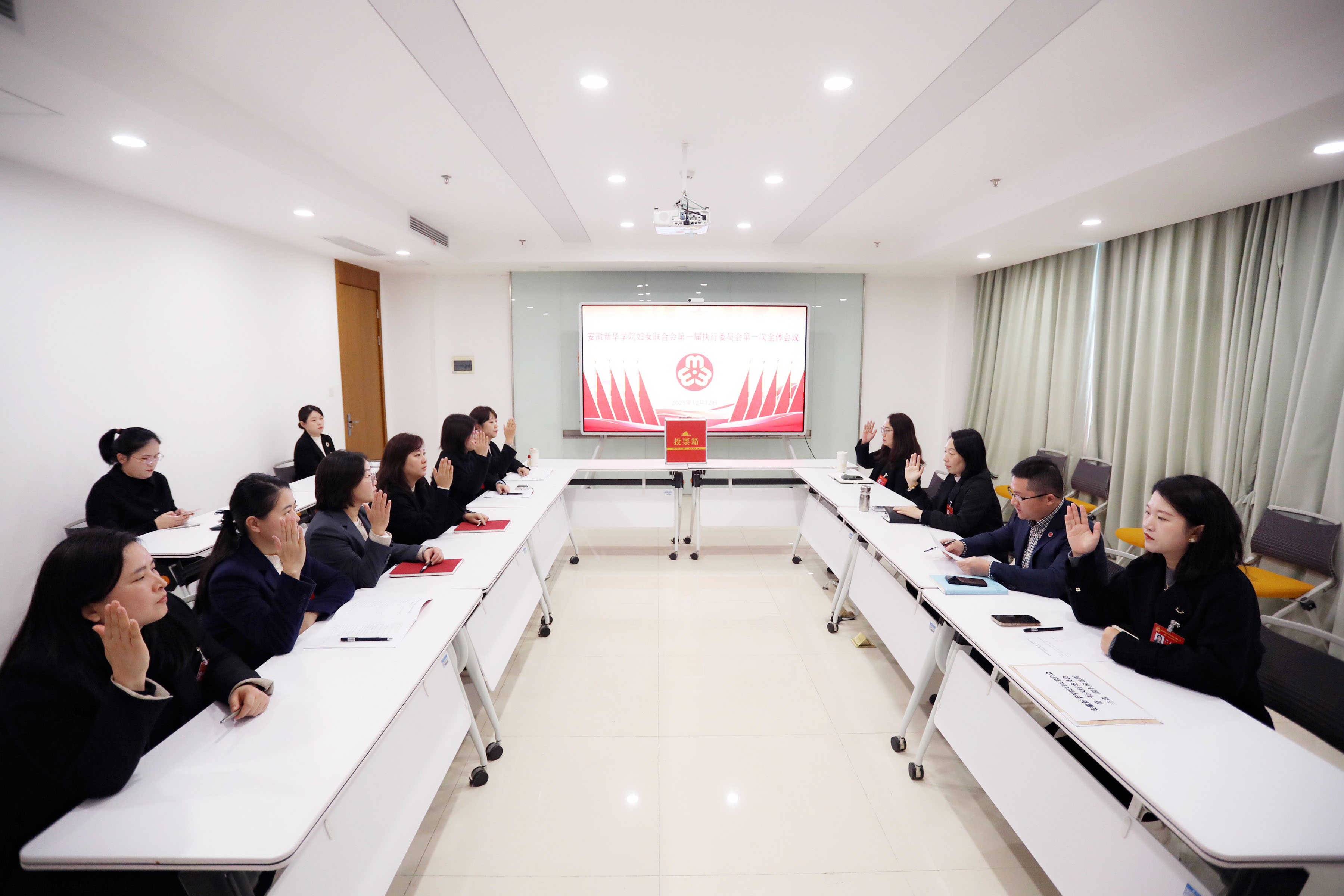 第二次全体会议由王琦进主持。总监票人向大会详细报告了妇联第一届主席、副主席的选举结果,贺行佳宣布当选名单。