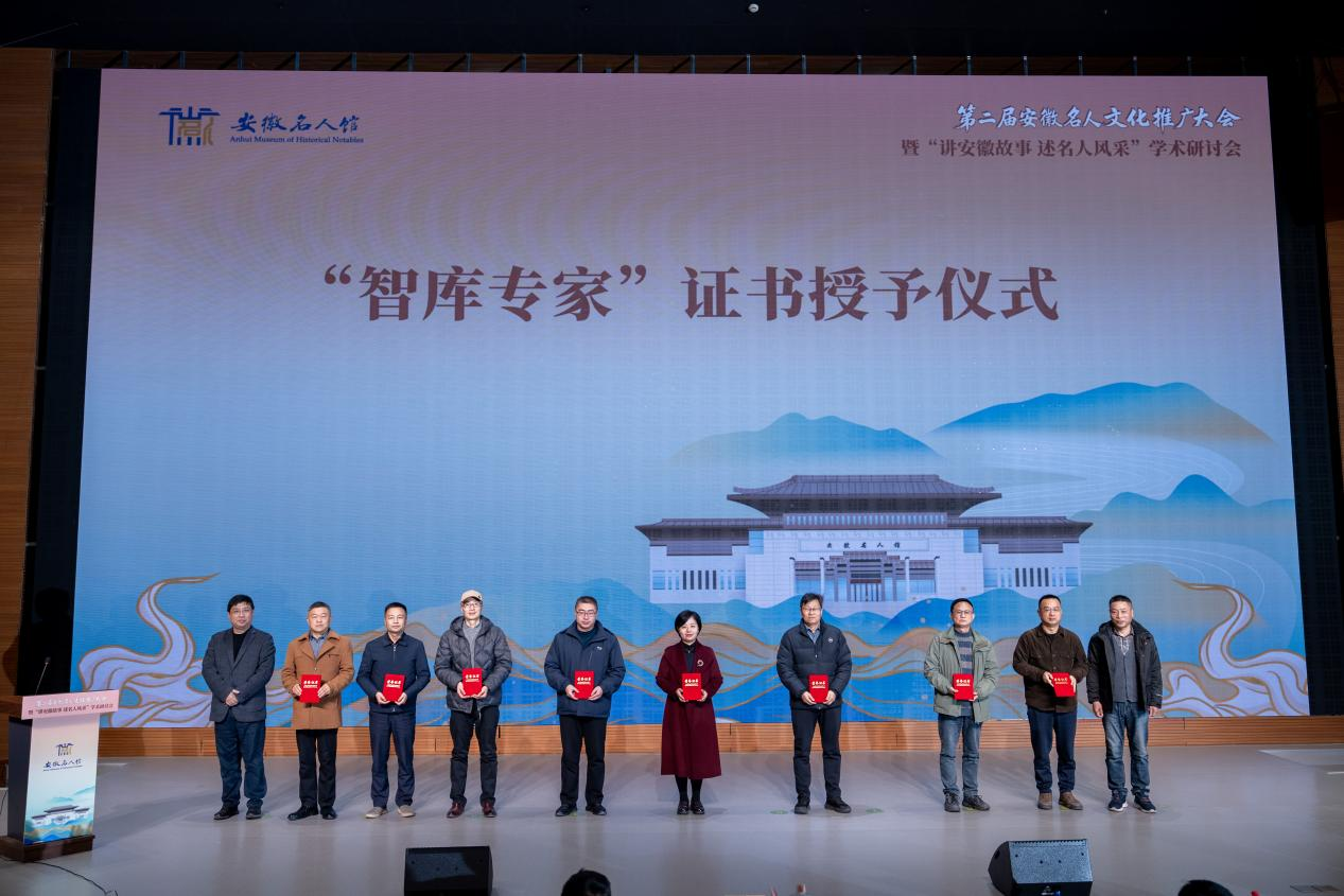 会上,安徽省文化和旅游厅博物馆与社会文物处副处长李玮、渡江战役纪念馆(安徽名人馆)管理处党支部书记、处长杨圣兵先后致辞。会议隆重举行了“讲安徽故事 述名人风采”征文比赛颁奖、渡江战役纪念馆(安徽名人馆)新聘智库专家以及“博物馆之友”聘书颁发仪式。