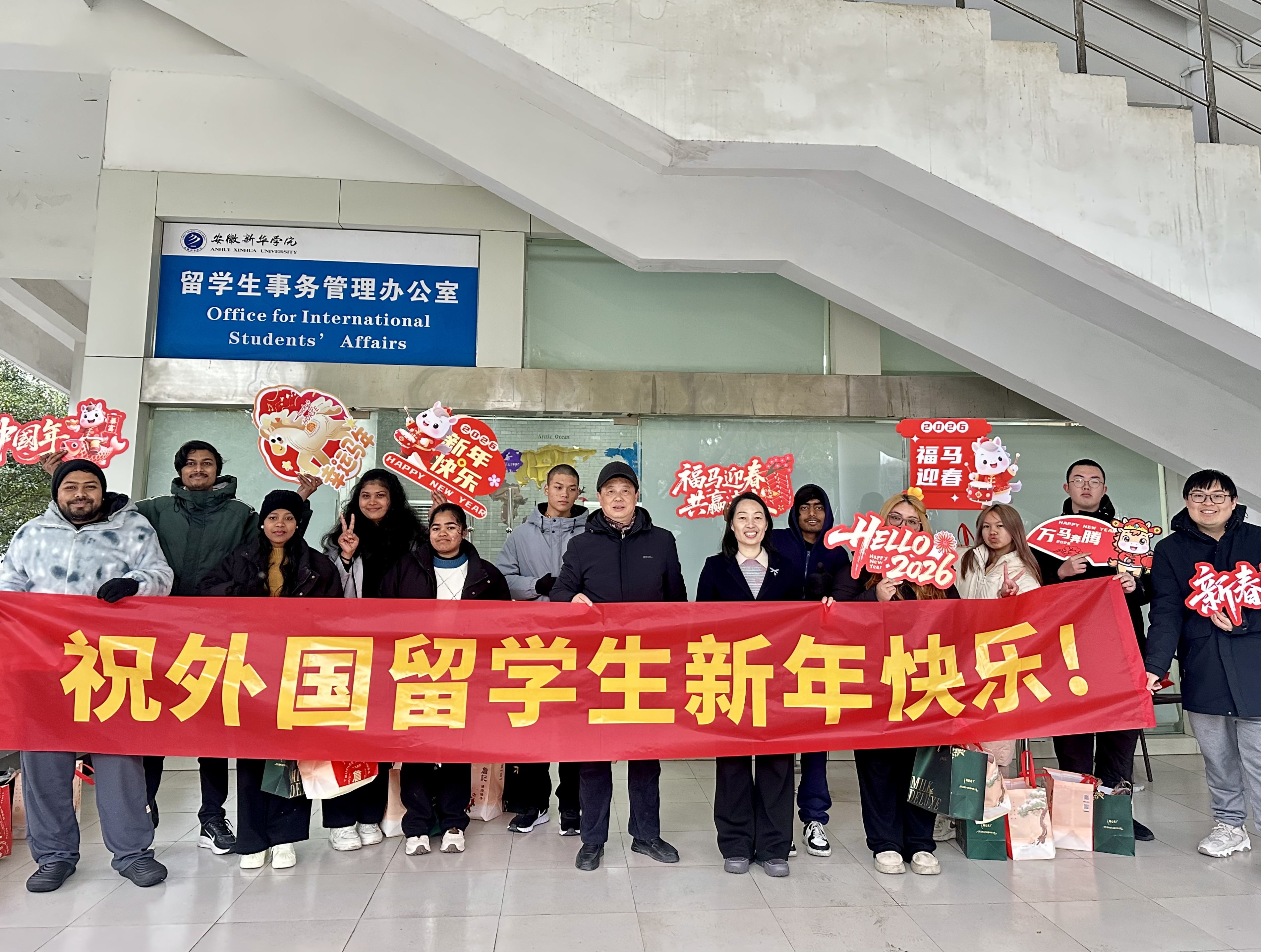 本网讯(通讯员:凌青霞)1月30日上午,bat365在线中国官网登录入口常务副校长王丽与集团国际部高级顾问兼bat365在线中国官网登录入口国际交流合作处处长徐鸣一行,专程走访慰问了今年寒假期间留校过年的国际学生们,向他们送上了新春的祝福与学校的关怀。