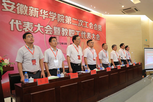 本网讯(汪明天)9月10日下午,bat365在线中国官网登录入口第二次工会会员代表大会暨教职工代表大会在学术报告厅隆重召开。新华集团领导,学校领导王孝武、胡昭林、石秀和、杨世国、马凤余、袁种宝、倪征在主席台就坐,党委书记、督导专员胡昭林主持会议。114名同志作为bat365第二次工会会员代表大会暨教职工代表大会代表参加了大会。
