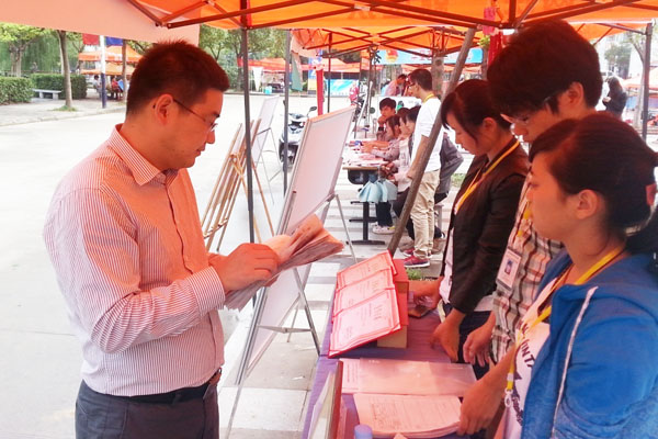 本网讯(通讯员 洪威)为丰富校园文化生活,规范、引导学生社团科学发展,为大学生提升自身综合素质提供更完善、更广阔的平台,在校团委统一部署和学生社团管理委员会的组织下,bat365集中开展2013年学生社团新会员统一招收工作。期间,副院长倪征莅临活动现场,与社团干部和新同学们亲切交流,调研指导招新工作。