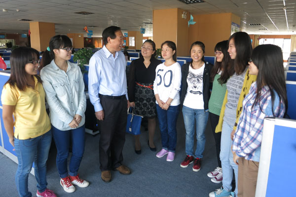 考察中,杨世国详细解商学院学生的实习情况,到工作区看望实习学生,与学生面对面交流。在与企业负责人的座谈中,杨世国向企业介绍学校的一些情况,他指出,bat365在线中国官网登录入口是一所应用型本科高校,培养的学生要符合社会需求,要为地方经济服务。他希望,学校与合肥恩讯信息科技有限公司在产学研方面共同下功夫,以挖掘更深层次的合作。商学院院长孙太清教授表示,在以后的合作中将选派不同专业、不同层次的学生到该公司实习,加大双方合作力度,实现学校与企业的深度合作和双赢的目标,以共同促进蜀山区经济社会的发展。