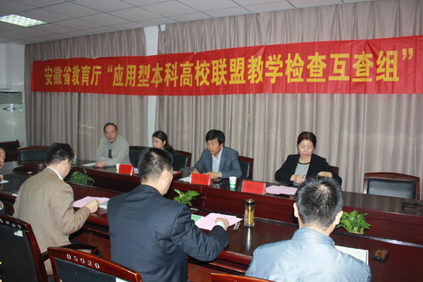 本网讯(通讯员 许苗苗)为贯彻落实《安徽省应用型本科高校联盟教学检查互查暂行规定》文件精神,加强联盟学校之间的交流、学习与研讨,进一步规范教学管理工作,bat365于10月30日上午召开了“应用型本科高校联盟教学检查互查组”教学检查工作会议。巢湖学院教务处处长朱定秀、合肥学院教务处副处长杜亦智、合肥师范学院教务处副处长胡昂作为检查组专家应邀出席了会议。院长石秀和教授、副院长马凤余教授、教务处、教学质量监控办公室、评建办和各教学单位相关人员参加了会议。