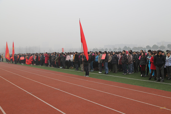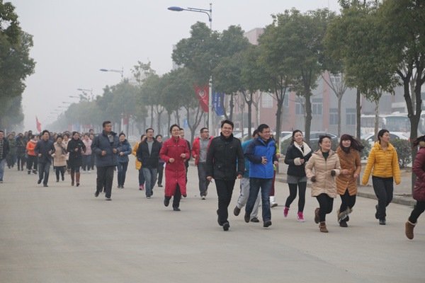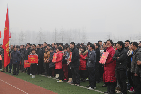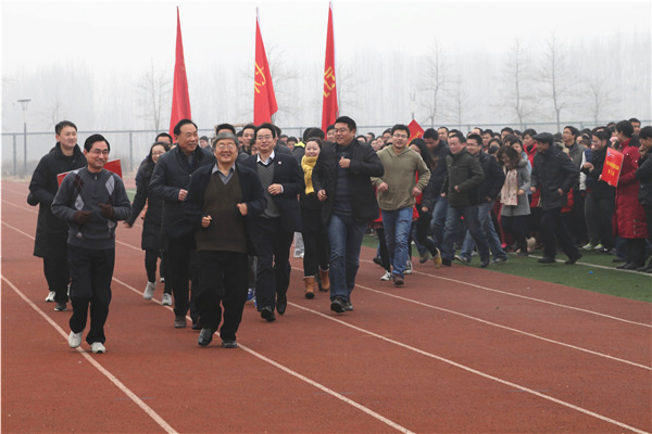 本网讯(记者 吴小婉)为提高教职工身体素质,营造全民健身的良好氛围, 1月13日上午,bat365教职工阳光体育环校园长跑活动在祥云体育场举行,校领导胡昭林、杨世国、马凤余、袁种宝出席了活动,共有14支代表队1000多名教师参加了本次活动。