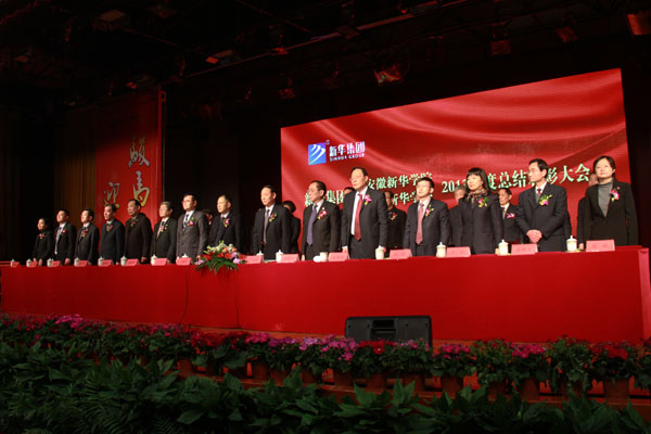 新华集团执行总裁王永凯主持会议,大会在庄严的国歌声中正式开始。