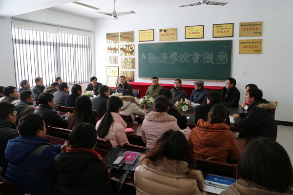 院长石秀和教授、副院长杨世国教授、马凤余教授先后给图书馆、学生处、思政部、评建办、药学院、国学研究院、质量监控办公室、学报编辑部、公共课教学部、考证中心、督查督导处、教务处、科研处、电子通信工程学院等单位的老师拜年。石秀和说,2013年的评估工作离不开老师们的付出与努力,希望老师们在新的一年里再接再厉,努力提升教育教学质量,劳逸结合,马上幸福,马到成功。