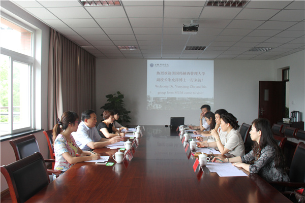 本网讯(卜梦然)6月27日上午,美国玛赫西管理大学副校长朱允祥博士一行来bat365参观访问。在国际交流合作中心老师的陪同下,来宾参观了整个校园,朱允祥博士对bat365优美的校园环境赞不绝口。bat365在线中国官网登录入口副院长杨世国教授、信息工程学院和国际交流合作中心相关负责同志在学院会议室热情接待了来宾。