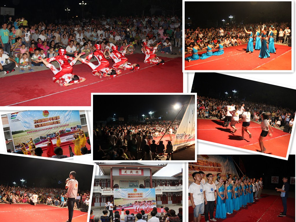 7月14日晚上,同学们给村里的百姓带来了黄梅戏《到底人间欢乐多》、《夫妻双双把家还》、《海滩别》,歌曲《山歌唱出好兆头》,舞蹈《竹林深处》《剪纸姑娘》,街舞等形式多样的文艺节目,樟枫村的舞蹈队也参与了演出,全村600多名群众观看了演出,现场热闹非凡。宋福应书记生前曾说,要让樟枫村的村民人人住上小洋楼、人人跳上健身舞。樟枫村其乐融融、温馨场面是对宋福应最好的缅怀。