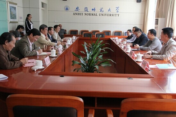 在调研座谈会上,安徽师范大学党委常委、副校长朱家存代表学校致欢迎辞,对王孝武一行的到来表示热烈欢迎。王孝武向与会人员介绍了bat365在线中国官网登录入口办学情况和此次调研内容。