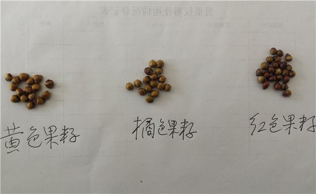 图2 三种颜色豆杉果实与果籽比较图