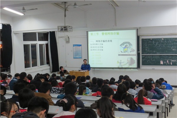 11月28日,由学校信息中心、学生处、校团委主办的校园网络安全知识讲座在药学院阶梯教室举行。讲座围绕网络安全维护、如何识别网页诈骗、手机短信诈骗,网络病毒处理、个人数据保护等,通过举例说明系统分析了日常生活中与学生息息相关的几类网络安全问题。
