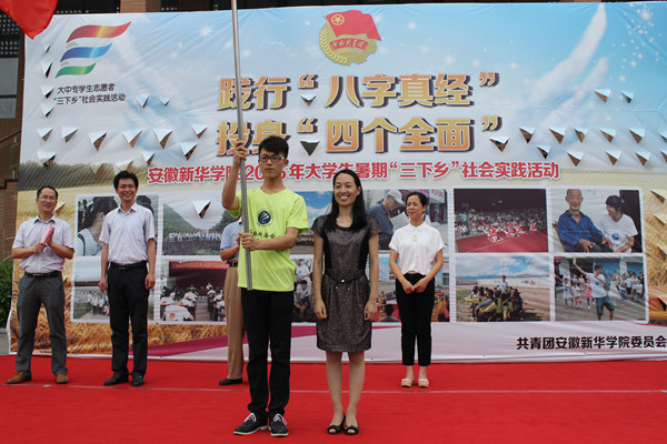 本网讯(通讯员:洪威)6月24日下午,bat3652015年大学生暑期“三下乡”社会实践活动启动暨授旗仪式在图书馆广场举行。校长助理王丽、思政部、人事处、团委、督查督导处相关负责人参加了启动仪式并为各实践队授旗。