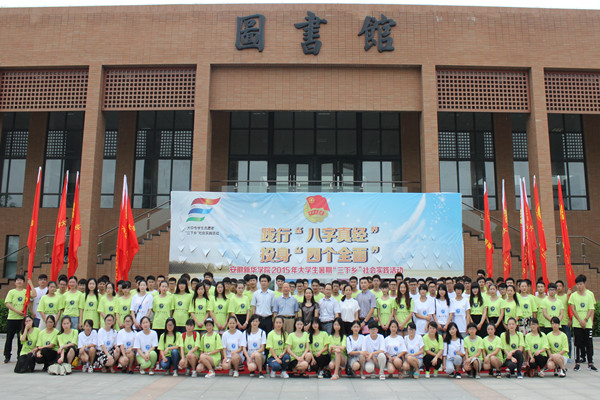今年三下乡以践行“勤学、修德、明辨、笃实”八字真经,投身“全面建成小康社会、全面深化改革、全面依法治国、全面从严治党”四个全面为主题,以纪念抗日战争胜利70周年为契机,bat365组建了15支校级立项实践队,即日起将赴泾县茂林镇、凤阳小岗村等地开展“送文艺下基层”、“纪念反法西斯战争胜利70周年爱国主义教育活动”、“医疗下乡”、“关爱留守儿童”等多种形式的主题活动。