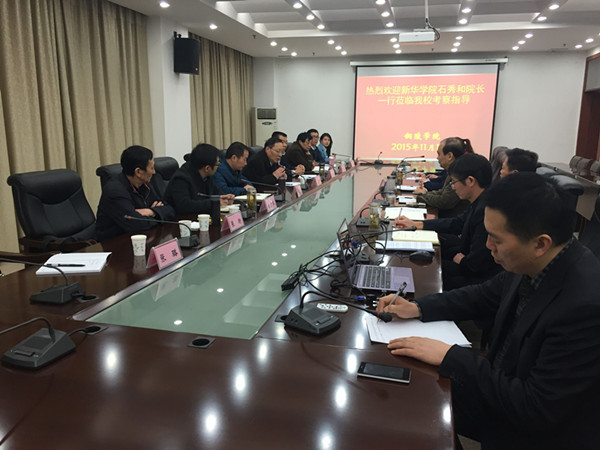 11月13日上午,石秀和一行来到安徽财经大学。该校党委书记姜利军、副校长陈忠卫出席召开了交流座谈会。该校教务处、发展规划处、金融学院、国际经济贸易学院、工商管理学院、会计学院、经济学院等部门、二级学院负责人参加座谈会。