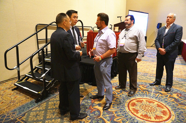 演讲结束后,与会人员排队等候与吴俊保董事长交流,表达合作意愿。