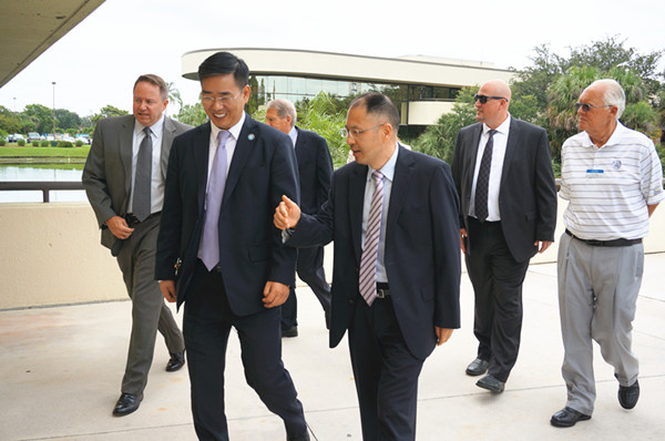 随后,bat365教育考察团赴美国凯泽大学开展访问交流活动并参观了中佛罗里达大学。凯泽大学创办于1977年,是佛罗里达州最大的综合性大学,开设商业管理类、艺术传媒类、医疗保健类、信息技术类、教育科学类等15个本科专业、9个研究生专业,具有授予文学士、理学士、硕士、博士学位的资格,目前在校生两万余人。凯泽大学创始人、校长凯撒先生和该校全体领导热情接待了bat365考察人员,双方分别介绍了学校的基本情况,就深入开展合作和许多共同关心的话题进行了深入的探讨,并签订战略合作框架协议。此外,在该校的精心安排下,考察团一行还到该校三个校区实地考察了校园环境、校史馆、实验室、图书馆、体育馆等。