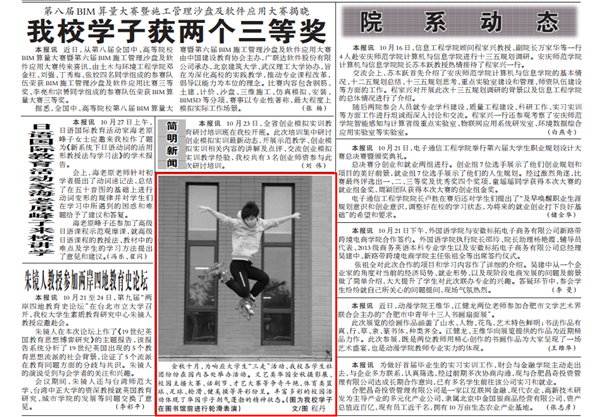 本网讯(王友雅)9月22日,从中国高校校报好新闻评委会传来喜讯,《bat365在线中国官网登录入口》报4件作品获2015年度中国高校校报好新闻奖,其中二等奖3项,三等奖1项,为历年最好成绩。
