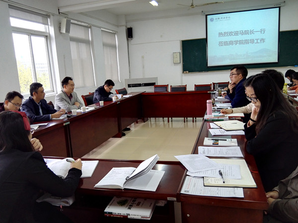 10月26日下午,商学院全体教师参加调研指导会。商学院执行院长方纯洁首先从学院总体情况、学科与科研工作基础、学科与科研工作存在主要问题以及“十三五”期间学科与科研工作基本思路与举措等四个方面进行汇报。