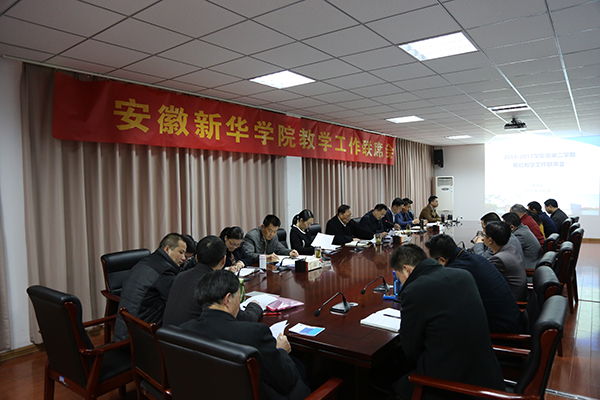 教务处处长助理濮明月对开学前“三教三表”准备情况、期初教学巡视调课情况、上学期不及格课程补考情况、教材选用质量评价情况、各二级学院学生参评情况、各教学单位教师参评情况、实验室利用情况等九个方面进行了全面小结。教学质量监控办公室主任李志远对2017年度教学质量监控工作计划的提交情况进行了通报,并对2016-2017学年第一学期期末试卷评阅质量专项检查工作进行了解读。校长助理、教务处处长朱兆健从专业建设、实践教学、教学运行、考务学籍、师资建设等方面对教务处三月份重点工作进行了布置和解读。