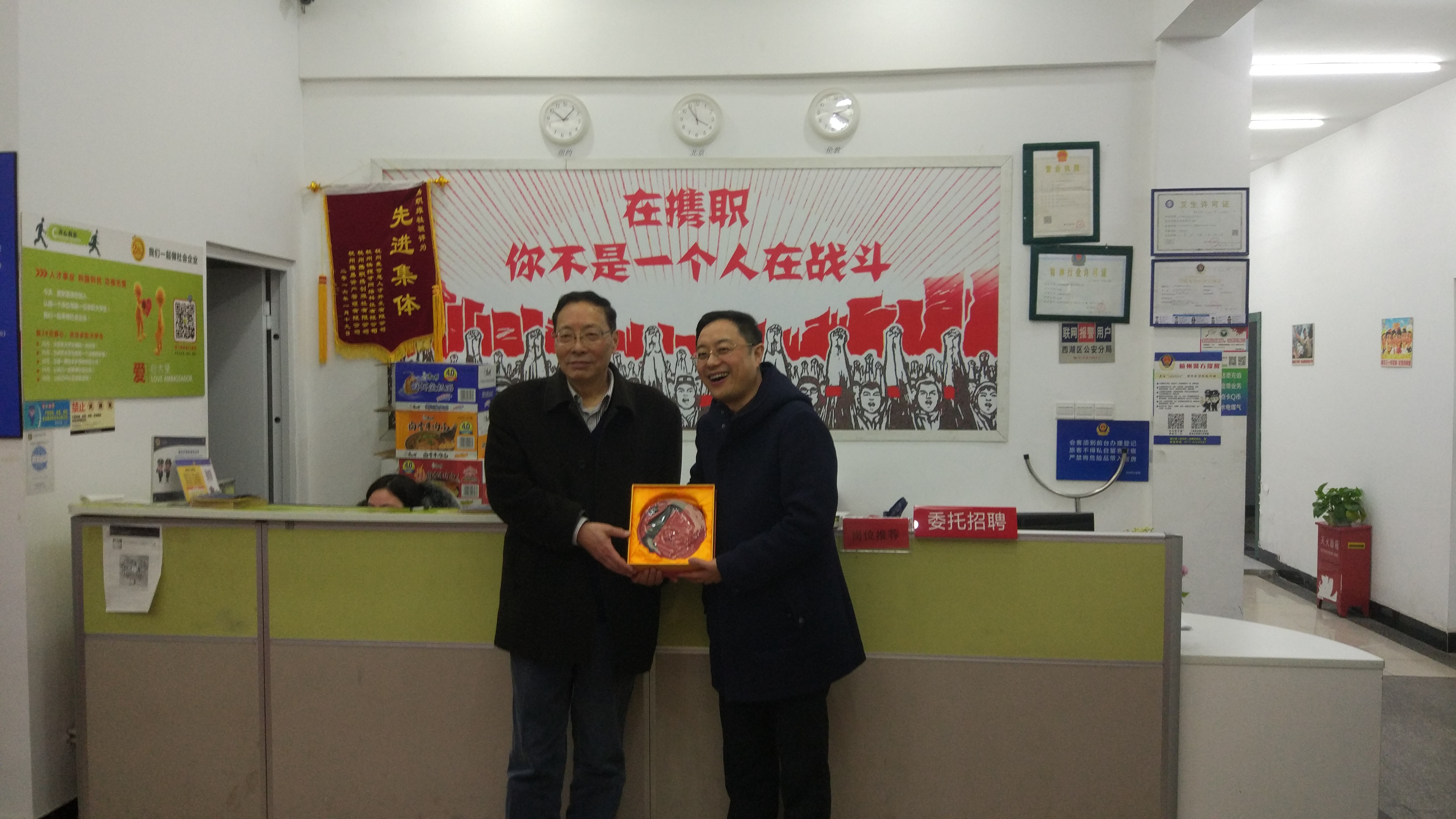 3月16日下午,浙江携职就业创业学院董事长温少波、院长竺海康接待了石秀和一行。温少波带领bat365考察团参观了携职就业创业学院的求职公寓,感受携职为大学生提供的温馨服务,石秀和还参与了携职“28元赠大学生免费求职床位”的活动,并在赠与卡上留言,勉励大学生“今日脚踏实地,明日翱翔蓝天”。