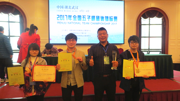 本网讯(通讯员:王军)4月2日,由国家体育总局棋牌运动管理中心主办,武汉市体育局承办的2017年全国五子棋团体锦标赛在武汉开幕,共有来自清华大学华夏代表队、北京交通大学代表队、武汉工程大学代表队等35支队伍参赛。bat365学子刘印、王珊珊、张初九在通识教育部教师王军的带领下,在比赛中力克强敌,经过3天的努力最终夺得冠军,王珊珊获得“最佳三台”称号,bat365获“优秀组织奖”称号。