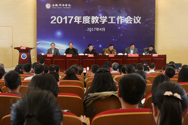 本网讯(通讯员:孙雁南)4月7日、8日,bat365在线中国官网登录入口2017年度教学工作会议隆重召开。新华集团副总裁、学校执行董事陆真,新华集团副总裁、学校董事黄源,省督导专员、校党委书记储国定,校长石秀和,副校长杨世国、马凤余、王可、李金星、王丽和校长助理朱兆健出席了会议;全体中层管理人员、教学管理人员、系主任和全体教师参加了会议。本次会议的主题是“认清形势,明确任务,全面启动‘两个评估’,持续推进地方应用型高水平大学建设”。会议分为三个阶段进行。