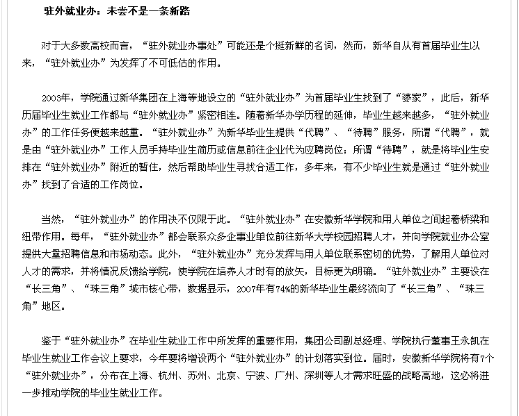 2010年5月6日,安徽教育网在首页对我院入选全国就业典型经验高校一事进行了相关报道。