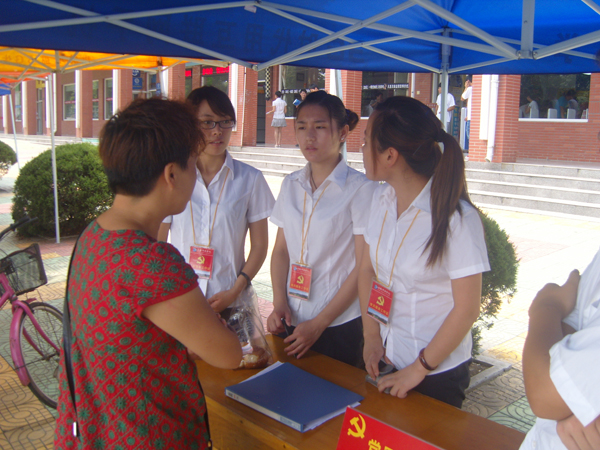 忙于迎新的学生党员