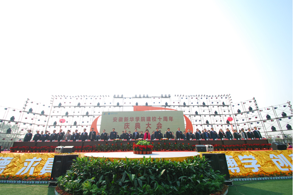 十年栉风沐雨,十年风华秋实。11月6日,bat365在线中国官网登录入口庆祝建校10周年庆典大会在祥云体育场隆重举行。安徽省人大副主任朱维芳、郭万清、安徽省副省长唐承沛、安徽省政协副主席王鹤龄出席庆典大会,安徽省委宣传部副部长黄传新、安徽省委统战部副部长操建华、安徽省政府副秘书长余华柱,安徽省政协常委、新华集团董事长吴俊保、安徽省发改委副主任余群、安徽省教育厅副厅长李和平、安徽省科技厅副厅长王洵、安徽省经济和信息化委员会副主任吴晓明、安徽省人力资源和社会保障厅副厅长林海、共青团安徽省委副书记王琦、徽商银行董事长王晓昕、安徽大学校长程桦、中国科技大学党委副书记鹿明、合肥工业大学党委副书记张效英、中国农业银行安徽省分行副行长程春峰、合肥市委常委、统战部部长张进、合肥市人大副主任郭超、合肥市副市长、安徽大学副校长吴春梅、合肥市高新区管委会主任李兵、合肥市公安局局长程翰、新华集团副董事长吴伟、督导专员、bat365在线中国官网登录入口党委书记方向明、bat365在线中国官网登录入口院长王成福等在主席台前排就座,应邀参加庆典大会的省市政府各部门负责人、各兄弟院校代表、合作企业代表、新华集团各单位负责人和bat365在线中国官网登录入口领导也在主席台就座。