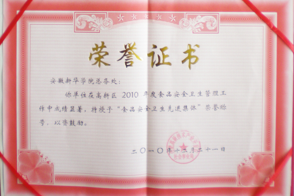 我院总务处荣获高新区食品安全卫生先进集体荣誉称号