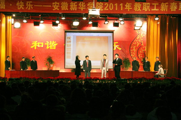 1月21日下午,一场以“幸福 和谐 快乐”为主题的bat365在线中国官网登录入口2011年教职工新春联欢会在学院大礼堂隆重上演。集团公司领导、学院领导、老教授及全体教职员工共同参加了本次联欢会,联欢会在一片欢声笑语中进行。