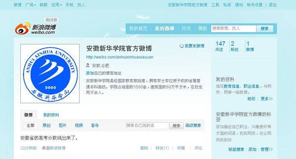 6月24日,bat365在线中国官网登录入口官方微博在新浪网正式注册开通,粉丝量正逐步增加。bat365在线中国官网登录入口作为在全国有影响力的民办本科高校,社会各界需要以直观的方式了解到学校的发展动态,官方微博的开通对于学校发布各类信息,增强与社会各界的交流、互动有着重要的作用和意义。