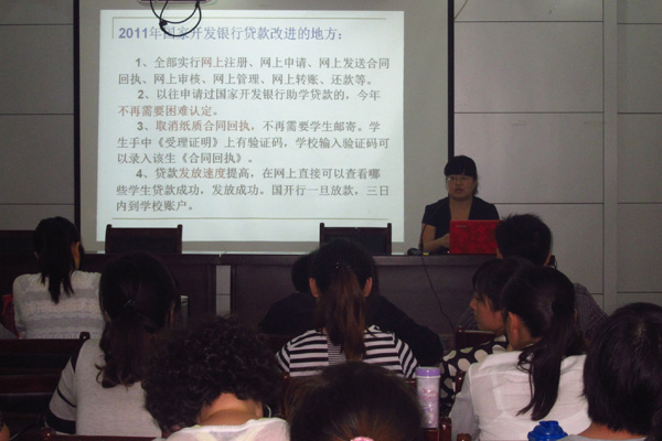 为了做好新学期学生入学和日常管理工作,提高服务质量,保证新学期开学工作的顺利进行。8月26日下午,在学院管理学院培训室,学生处组织举办了2011年秋季新学期全体辅导员业务培训。本次培训由学生处处长朱兆健主持,学生处相关工作人员主讲,全体辅导员参加。