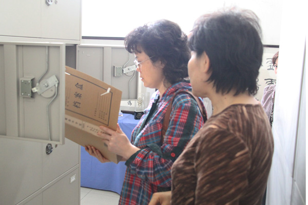 尤正节实地查看档案室,详细了解了档案室的建设情况,包括档案室的软件、硬件设施以及内部管理,重点检查档案库房管理,档案管理制度,档案预立卷、归档整理、案卷质量以及档案检索利用等方面的情况,仔细检阅了文书档案、基建档案、会计档案、声像档案和学籍档案等。