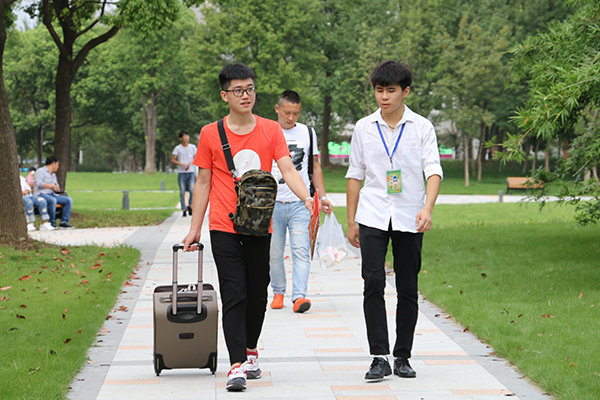 坐了12个多小时高铁才来到校园的2017级电子信息专业的陆琳珊是一位来自广东的女孩,“来到学校最先感受到的就是学长学姐们的热情,在他们的帮助下完成了一系列的报到手续,虽然很累,但是环顾四周,校园的环境让我觉得很舒服,所有的疲惫感都一扫而尽了。”尽管距家太远,但陆琳珊乐观地说:“和同学一起在这么美的校园里学习生活,一定不会孤单。”