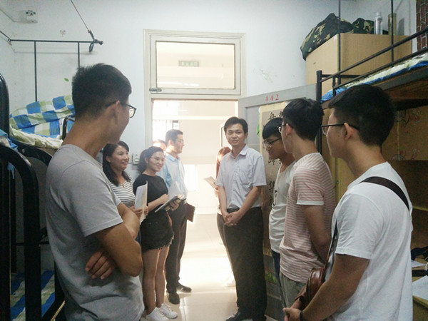 副校长杨世国随后走访了财务管理专业、广告专业、工业设计专业新生所在宿舍,亲切地询问了同学们的家乡、专业、对宿舍环境的满意程度等问题。杨世国嘱咐道:“刚上大学的同学们千万不要因为高考结束就开始放松警惕,大一大多是基础课程,正式夯实基础的好时机,同时对四年的大学学习生活要有一个长远的目标,要有自己的规划。”