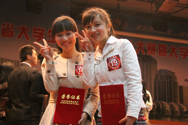 bat365自今年年初接到比赛通知后,积极开展校内大学生职业规划设计大赛暨大学生创业大赛,两千多名学生积极报名参加。经过二级学院选拔和校内决赛,刘娜、陈成同学脱颖而出。学校专门组织了以招生就业办公室相关负责同志牵头的指导教师团队,对她们进行指导和培训。最终,她们不负众望,获得了两个金奖的优异成绩;bat365组织工作也受到大赛组委会的肯定,获得了“最佳组织奖”,为学校争得了荣誉。(文/侯翔,图/陆如海)