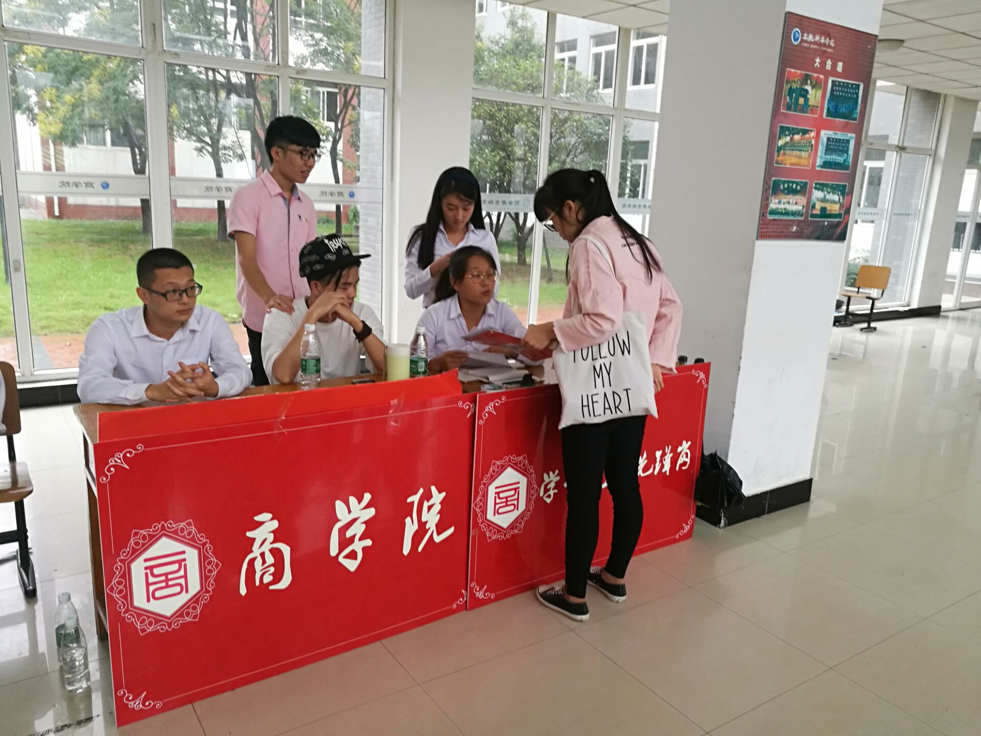 商学院学生党建工作室的8名学生党员为本次迎新活动的顺利开展积极组建了学生党员先锋队。在商学院东大厅设立岗位,为新生入学提供报到咨询,党务咨询,提供帮助等,努力做到将党的理论知识内化于心,外化于服务广大师生、学校和社会的行动上。