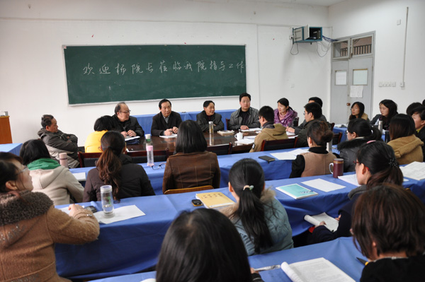 3月23日下午,杨世国教授来到药学院。研讨会上,药学院院长张国升教授分析了该院的科研、教研情况,着重介绍了药学院正在开展的4项重点产学研项目,对药学院将来的科研工作作了设想。药学院教学副院长宋美、学科带头人以及科研骨干教师,分别就他们在科研工作中遇到的困难和问题提出了合理的建议。