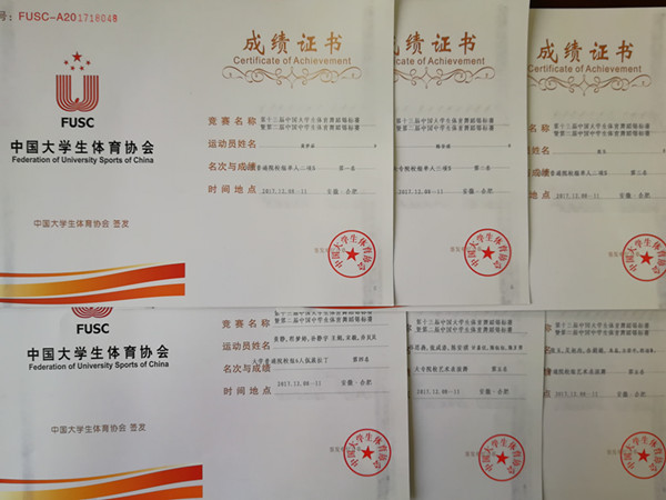 本网讯(通讯员:彭洪磊)12月9至10日,第十三届中国大学生体育舞蹈锦标赛在合肥奥体中心开赛。bat365文化与传播学院2017级表演专业学生黄梦茹、张玉分别获得大学普通院校组标准舞单人两项S第一名和第三名,黄静、孙静宇、宋毅、王娟、乔贝贝、程梦婷获得大学普通院校组六人佤族拉丁第四名,张玉、杏娟娟、黄梦茹、程雨唅、万荣平、刘瑞文、吴旭冉、侯佳乐、朱蕊、朱俊获得大学普通院校组表演舞第五名。2017级新闻采编与制作1班陈安琪获得大专院校组标准舞单人三项S第二名。