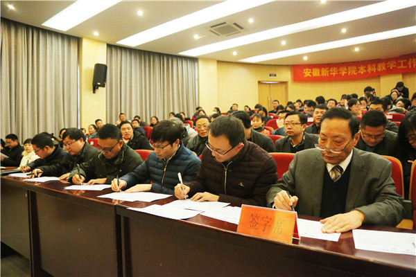 动员大会期间还举行了审核评估责任书签订仪式。校长石秀和代表学校与各二级学院、各单位、各部门主要负责人分别签订了《bat365在线中国官网登录入口本科教学工作审核评估责任书》。