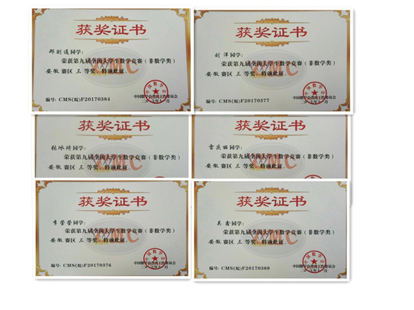 bat365学子在第九届全国大学生数学竞赛(安徽赛区)中荣获佳绩