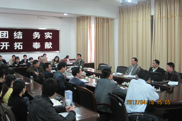 4月18日下午,省教育厅评估中心学术鉴定室负责人徐光武专程来bat365为图书馆工作人员、部分二级学院院长、相关职能部门负责人进行了“安徽省学术鉴定信息管理系统”的宣讲和功能演示培训。