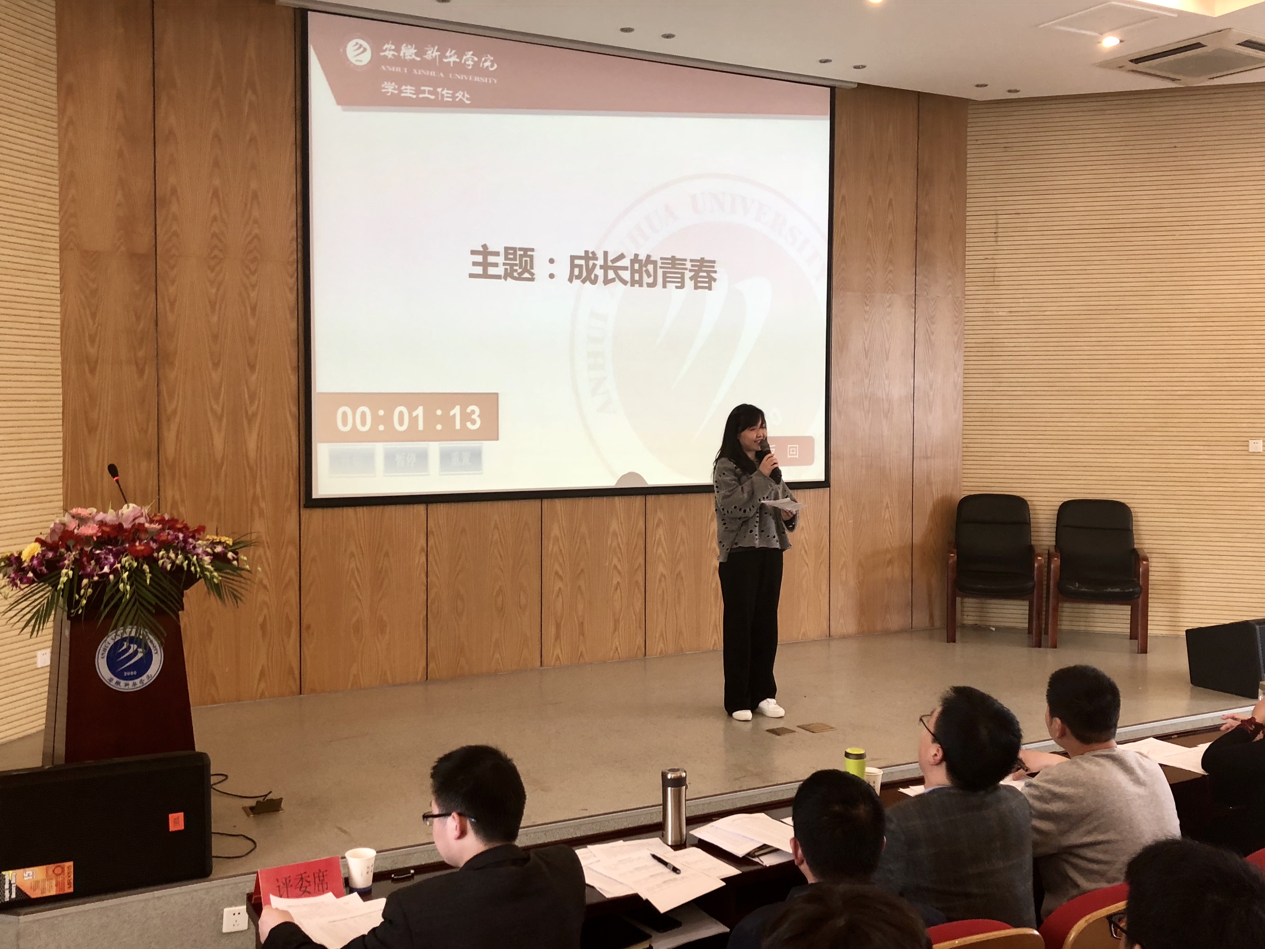 “主题演讲”环节设置了“新时代 新青年”“无问西东”等6个演讲主题,要求选手根据随机抽选的题目进行演讲,主要考察辅导员的逻辑思维及讲授能力。演讲过程中,各位选手结合自身从事辅导员工作的职业认知、工作理念和工作感悟侃侃而谈,充分展示了辅导员出色的语言表达能力和逻辑思维水平。