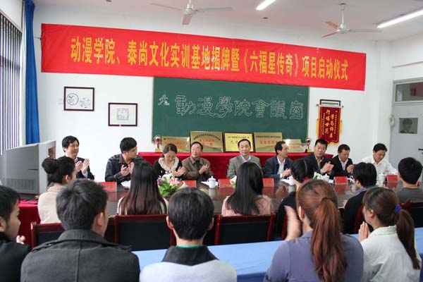 4月20日上午,bat365动漫学院与合肥泰尚文化科技有限公司实习实训基地揭牌暨《六福星传奇》动画片制作项目启动仪式在动漫学院会议室举行。副院长杨世国教授,合肥市科技局副局长、合肥国家动漫暨服务外包产业基地管委会主任马鸣,bat365教务处处长李志远、动漫学院院长孙家启教授,合肥泰尚文化科技有限公司总经理纪杰,bat365招就办及相关部门的负责人出席了启动仪式。