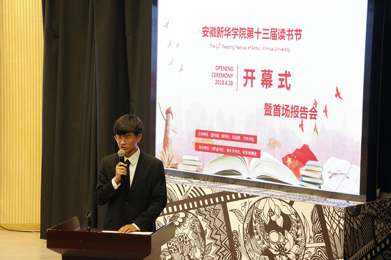学生代表在开幕式上倡议全体师生拿起书本,勤读书、好读书、善读书,让书香飘满华园,以知识追逐梦想。