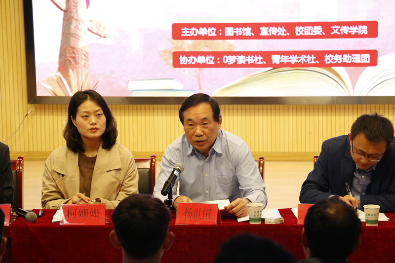 汤干君介绍了本次读书节系列活动内容。本届读书节将在往届经验基础之上,拓展活动的深度、广度,形式更加多样,内容更加丰富,开展学术专题讲座、经典阅读沙龙、线上读书交流、读者座谈会、报刊联展等读书活动,举办读书征文竞赛、微小说创作大赛、中华经典美文诵读大赛、学术知识竞赛等各类比赛,组织在肥高校文学团体交流会、优秀志愿者评选、“读书王”评选等活动。